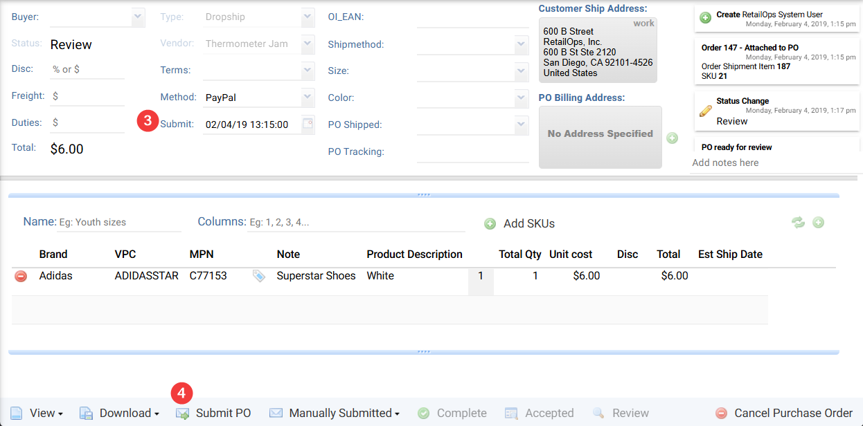 - At the bottom of the screen, press the [Submit PO] button.