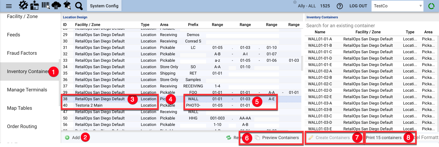 - If you need to print the location labels, select your label type and select Print x Containers.