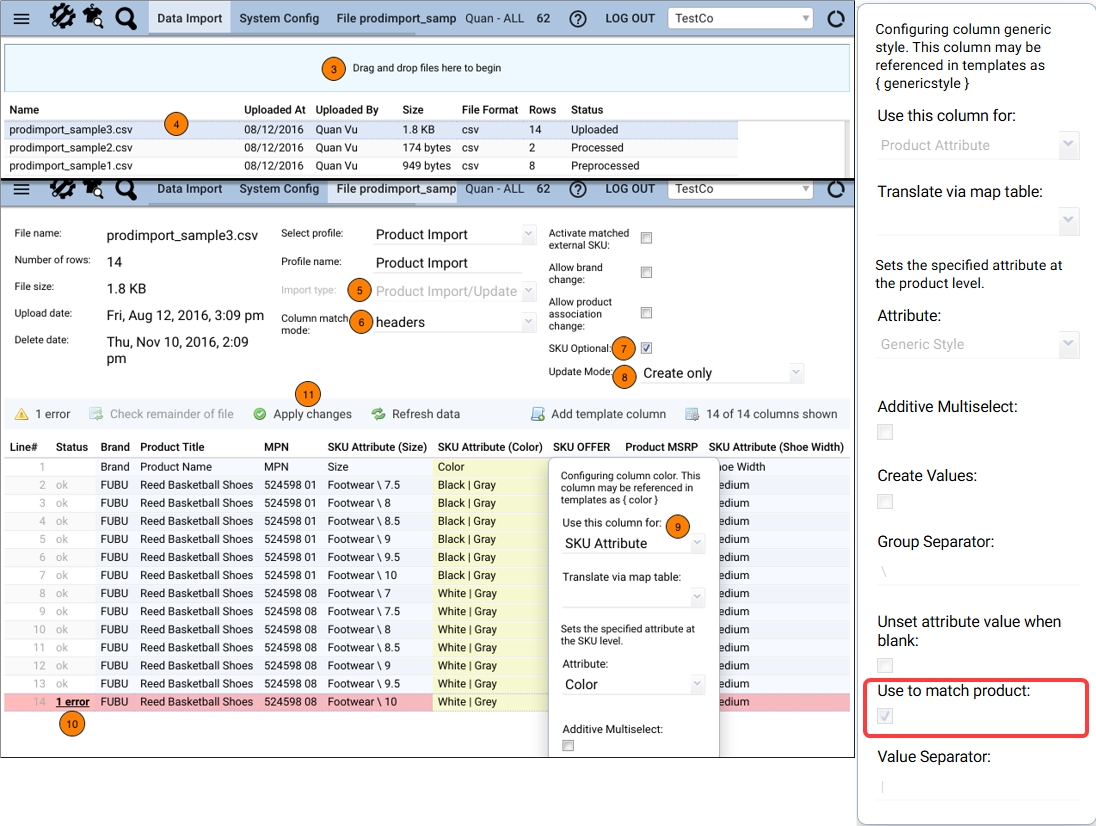 - Be sure to differentiate between Product Attributes (applied to the entire product family) and SKU Attributes (applied only to the unique SKU in the family).