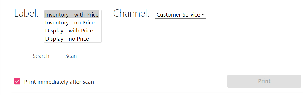 The Print Labels tool allows you to quickly print and reprint labels for use in brick-and-mortar stores. This tool has two main functions: