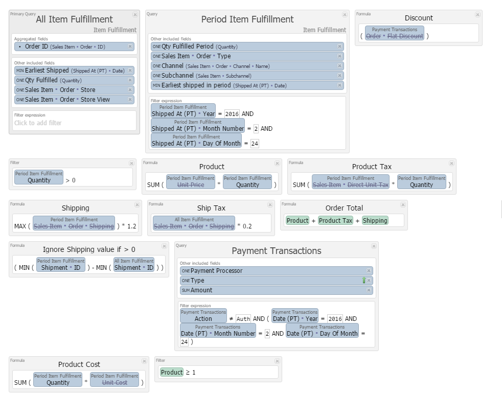 Jason - thanks for that - we are indeed accounting on an accrual basis, and we have gone down the rough route your outlined (our CFO may well want to add clarity here later on however!) - Because of our requirement to account for tax, and to charge for 100% of the shipping fee ( where one exists) only on the first despatch against an order, our report has evolved into a more complex one now - image is below (and I have to thank Daniel here for his vital input).